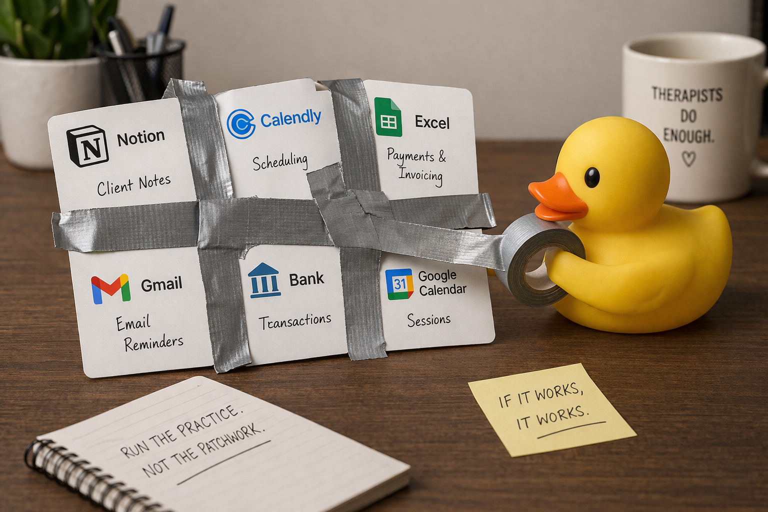 Duct-taped Notion, Calendly,